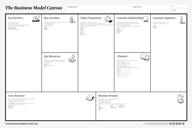 يعود الفضل لابتكار مخطط نموذج العمل التجاري إلى المؤلفين أليكس اوسترفالدر Alexander Osterwalder وإيف بينورYves Pigneur اللذين قدّماه في كتابهما Business Model generation والذي أطلق عام 2010. وتمت ترجمته للعربية (ابتكار نموذج العمل التجاري).
